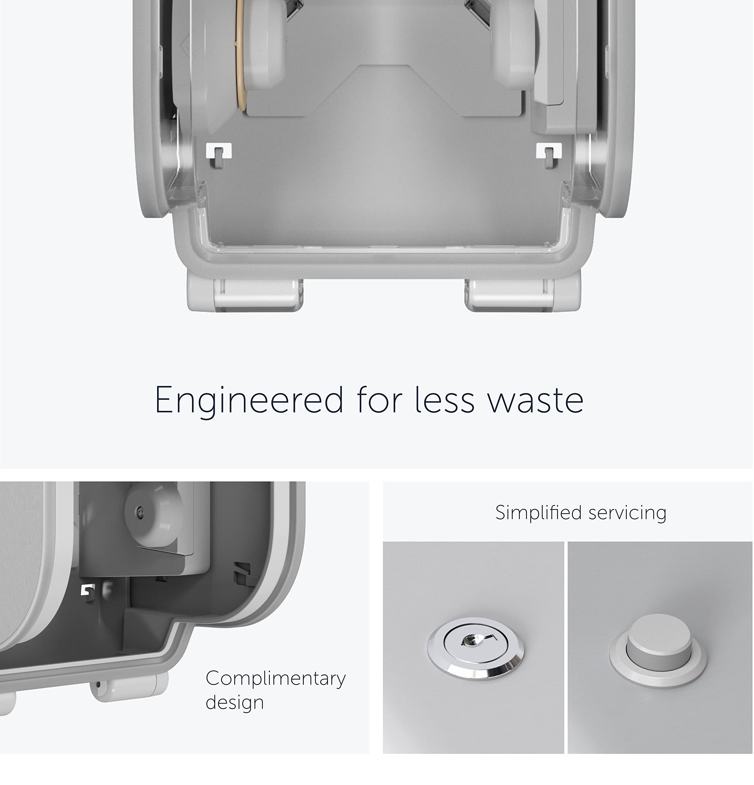 - Easy servicing with a choice of keyed or push button lock that can be positioned on either side of the dispenser.