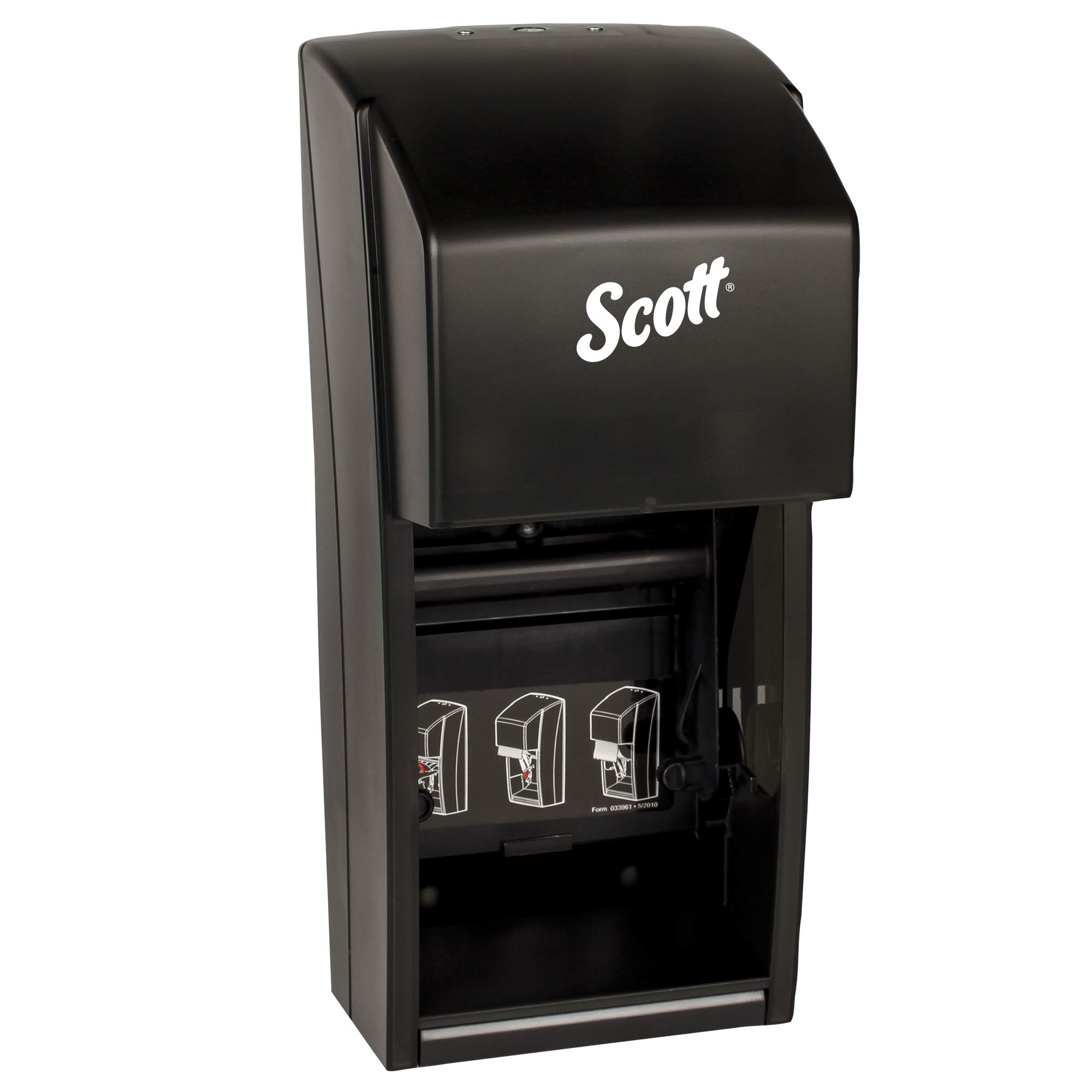 Scott Professional Vertical Standard Roll Toilet Paper Dispenser (09021), Dual Capacity, Black, 6.0"x13.6"x6.6" (Qty 1)